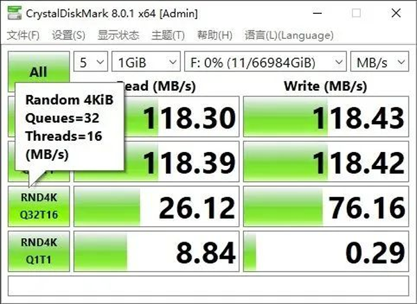 受限于千兆网络速度,将NAS映射为本地磁盘之后,顺序读取速度达到118.3MB/s,顺序写入速度同样高达118.43MB/s,日常备份影视数据也够用了。