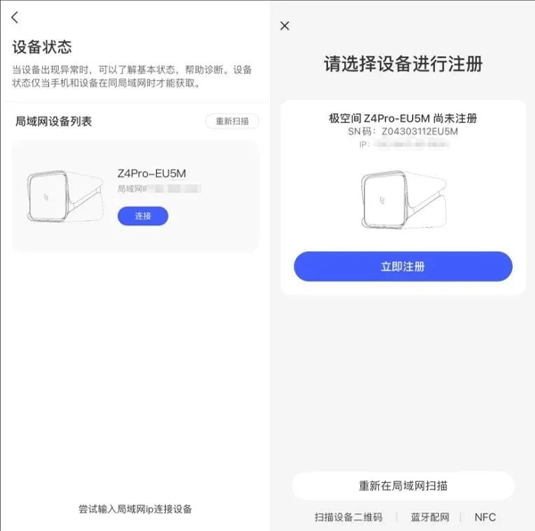 插好硬盘,接通电源和网线,开机。手机上下载极空间App,开机之后需要用手机号注册,然后开启这96TB硬盘仓库体验之旅。