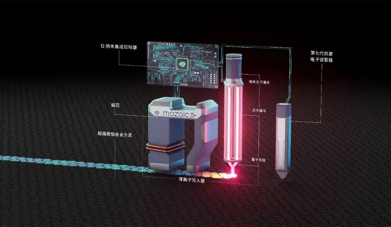 以具有纲举目张效应的介质材料选择为例:传统合金无法提供足够的磁性稳定性以实现有效可靠的存储,通常颗粒越小稳定性越差,要达成高密度目标必须另辟蹊径。魔彩盒3+开创性地使用铁-铂超晶格结构作为介质合金,大幅提升磁盘介质的磁矫顽力,并达成极高的位稳定性。为了配合新介质的特性,魔彩盒3+还设计了独创的等离子写入器,依托纳米光子激光器在介质表面产生微小的热点,以便可靠地写入数据,充分彰显HAMR技术的优势,并为快速规模化量产铺平道路。 事实上,类似的“黑科技”不胜枚举,它们彼此呼应、密切协作,共同为面密度创新闯出一片新天地。由于更小的写入数据颗粒只有在被读取时才能发挥作用,魔彩盒3+特别采用最小、最灵敏的第7代自旋电子读取器,与等离子写入器的子组件高度集成、互相促进;为了更好地协调各项技术,希捷还专门开发一款12nm集成控制器,基于专用集成电路实现高达3倍的性能提升。