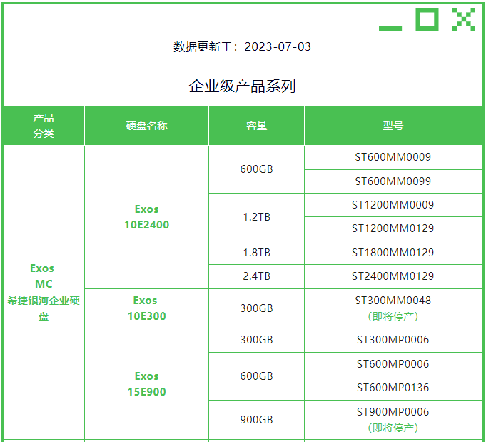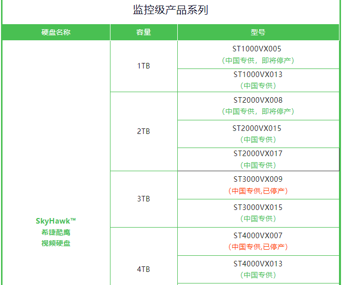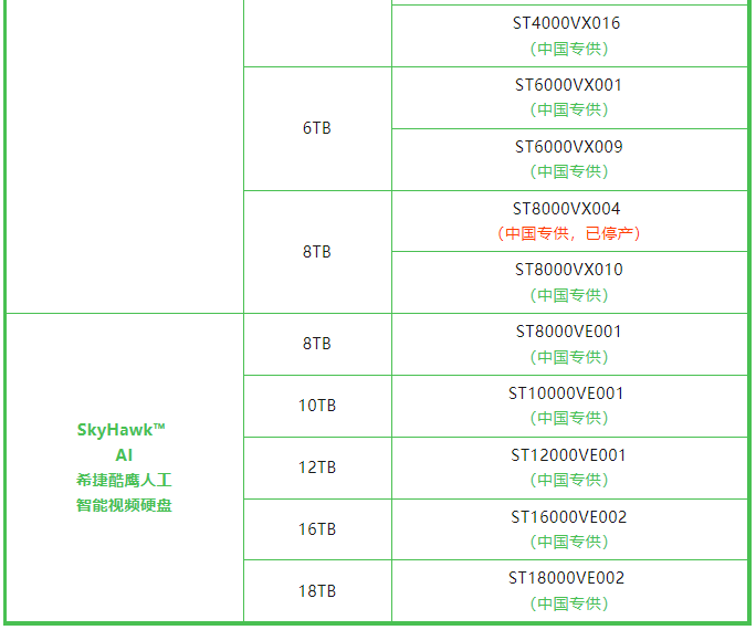 【2023Q3】中国热销在售希捷品牌企业级和监控级硬盘产品更新
