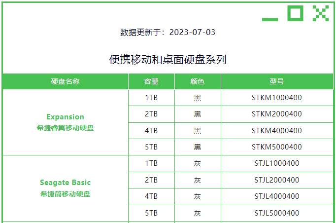 【2023Q3】中国热销在售希捷品牌外置消费级存储产品更新
