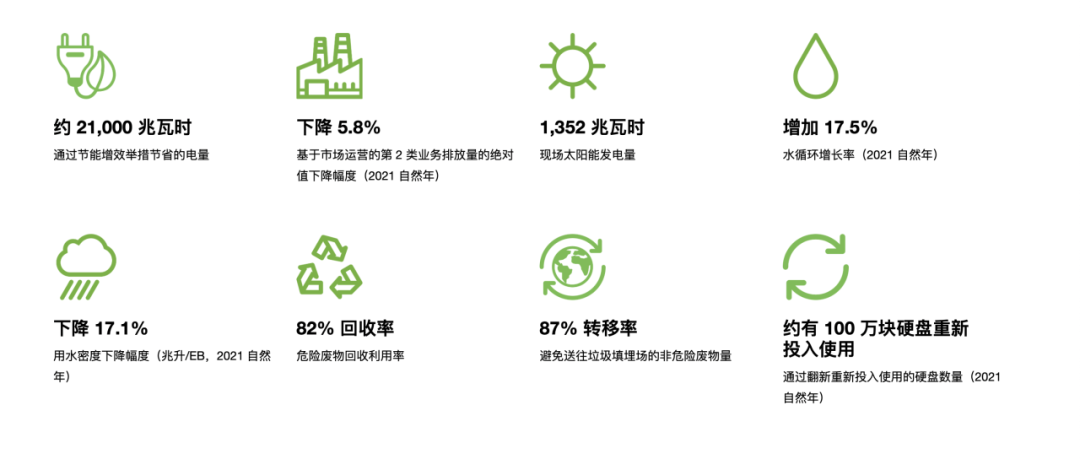 「希捷科技近期发布了《可持续发展数据圈:2022财年ESG报告》,这是希捷的第17期年度报告,全面阐述了希捷在ESG方面的工作进展。该报告宣布,希捷在2030年全球范围内使用100%可再生能源的目标已达成50%以上,并且在2022财年已通过翻新计划延长了一百多万块机械硬盘和固态硬盘的使用寿命,有效地避免了电子垃圾进入填埋场。另外,希捷科技的水循环相较上一年增长了17.5%,水循环一直是数据存储行业很关心的问题。」