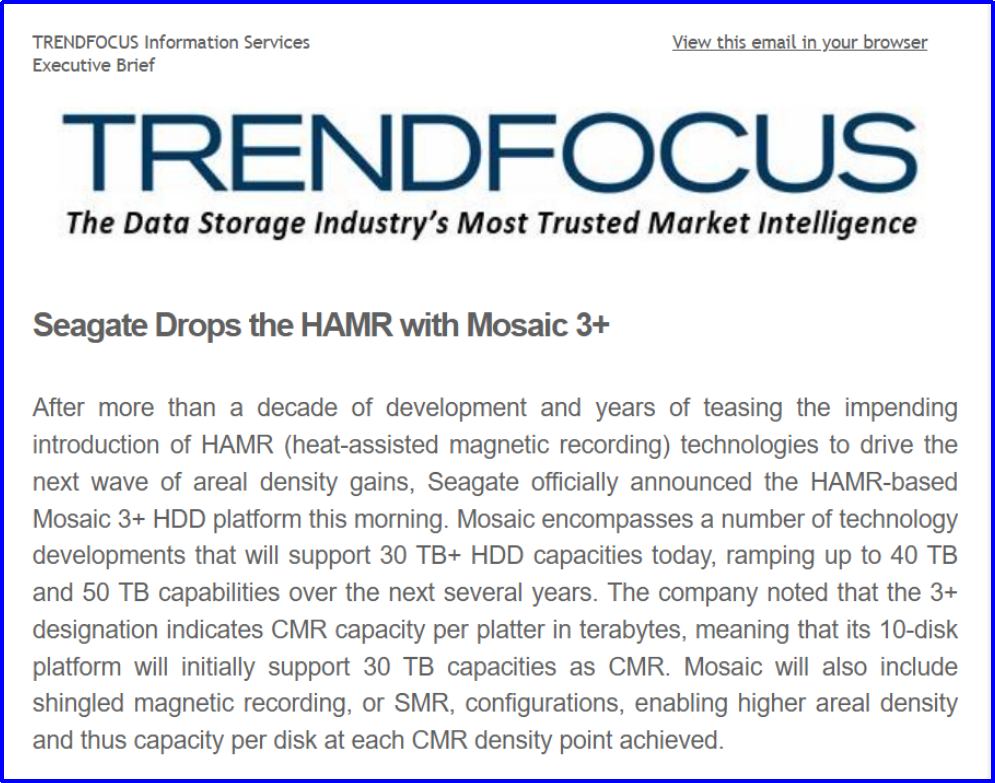 TrendFocus:HAMR技术的商业化进程即将开启,标志着存储行业的重要转折点。