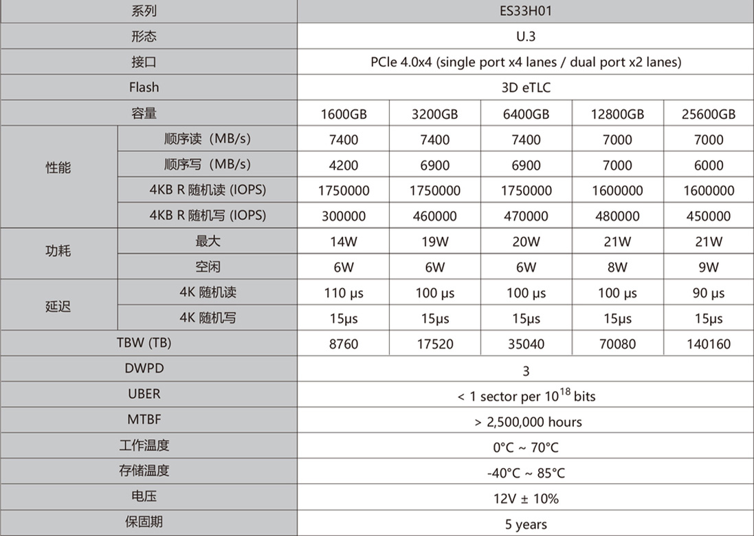 最高可实现7400/6900 MB/s的顺序读写和1750K/480K IOPS的随机读写,为数据中心应用提供高性能、低延迟、高可靠