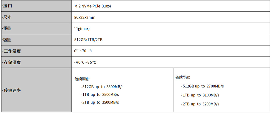 采用闪存3D NAND闪存阵列颗粒,国产主控,支持NVMe PCIe3.0*4 高速传输协议。