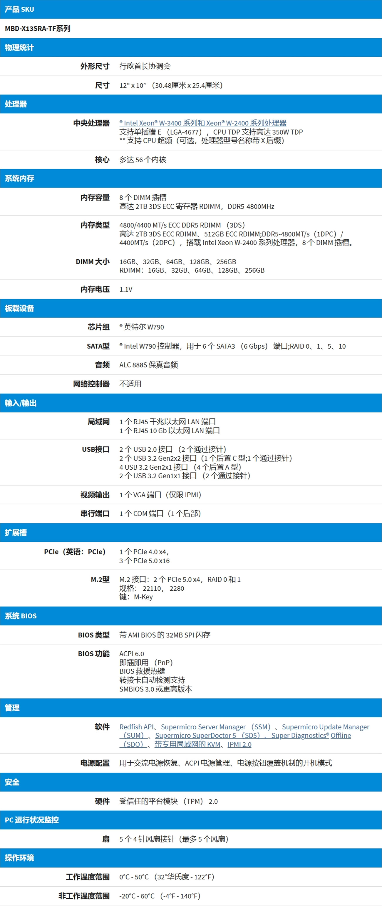 ® Intel Xeon® W-3400 系列和 Xeon® W-2400 系列处理器,TDP 高达 350W