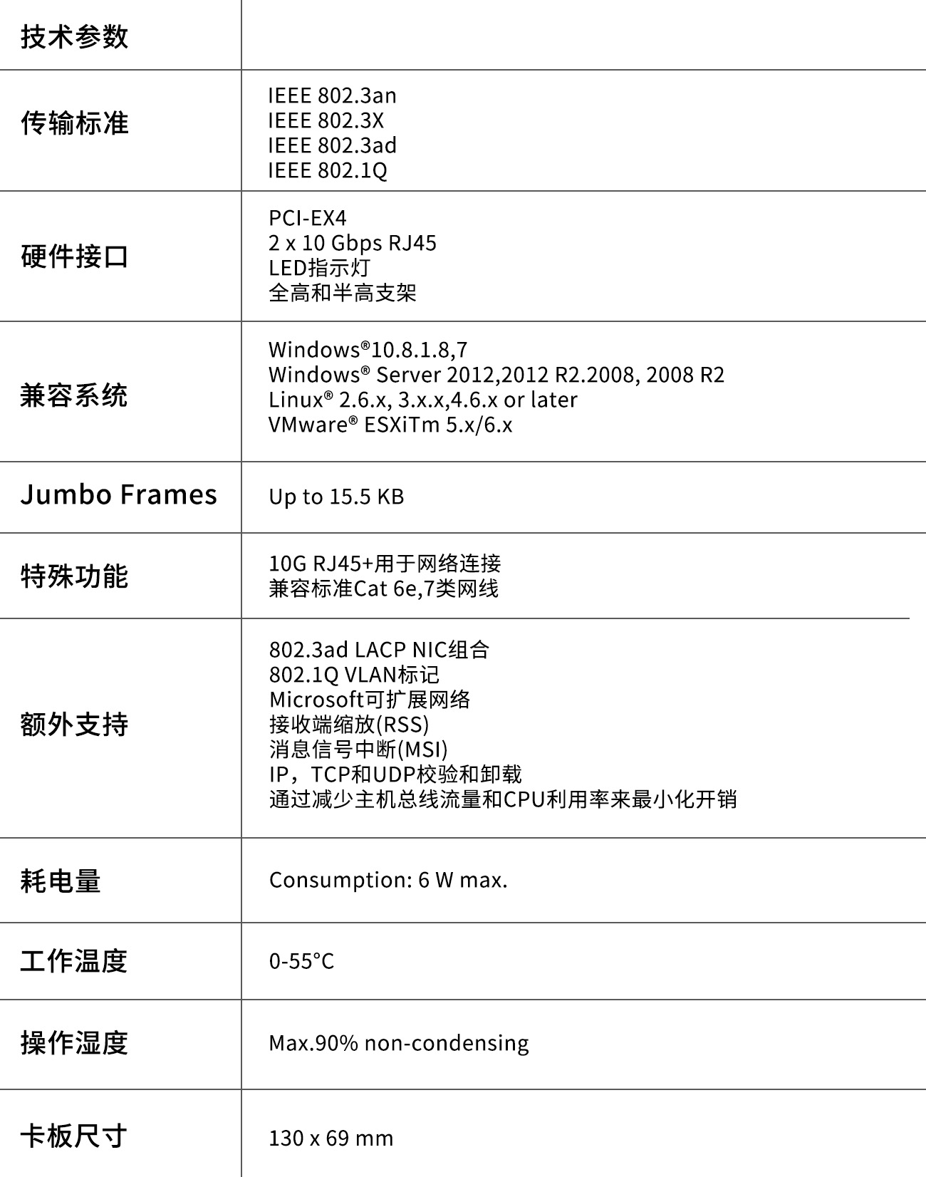 支持高达15.5KB的巨型机架 。