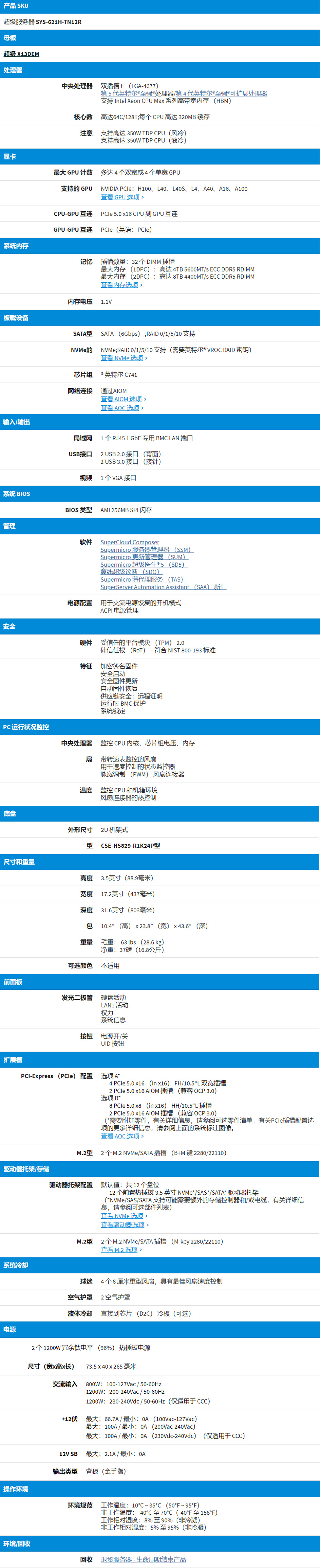 可选 PCIe 插槽配置,多达 8 个 PCIe 5.0 x8 或 4 个 PCIe 5.0 x16 插槽,支持双宽 GPU/加速卡。