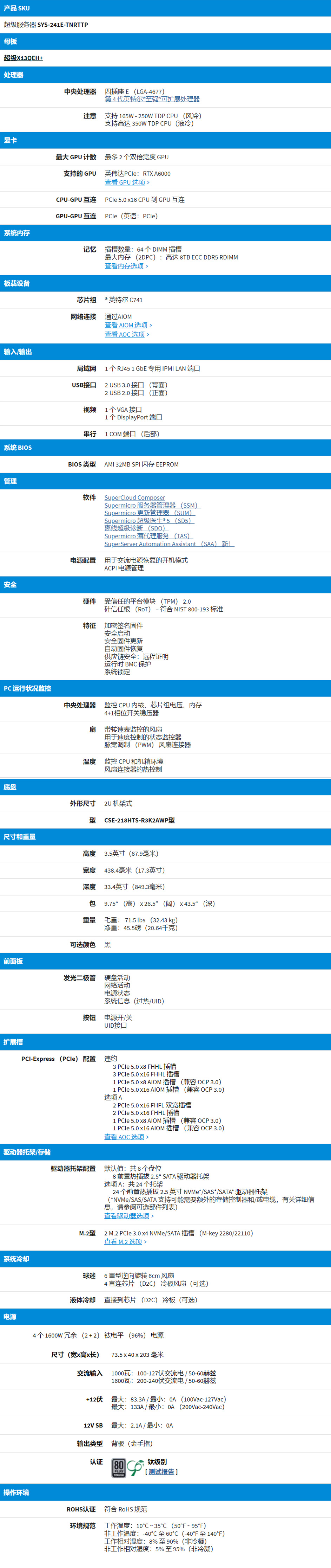 64 个 DIMM 插槽;高达 8TB DDR5-4800MHz ECC RDIMM/RDIMM-3DS。