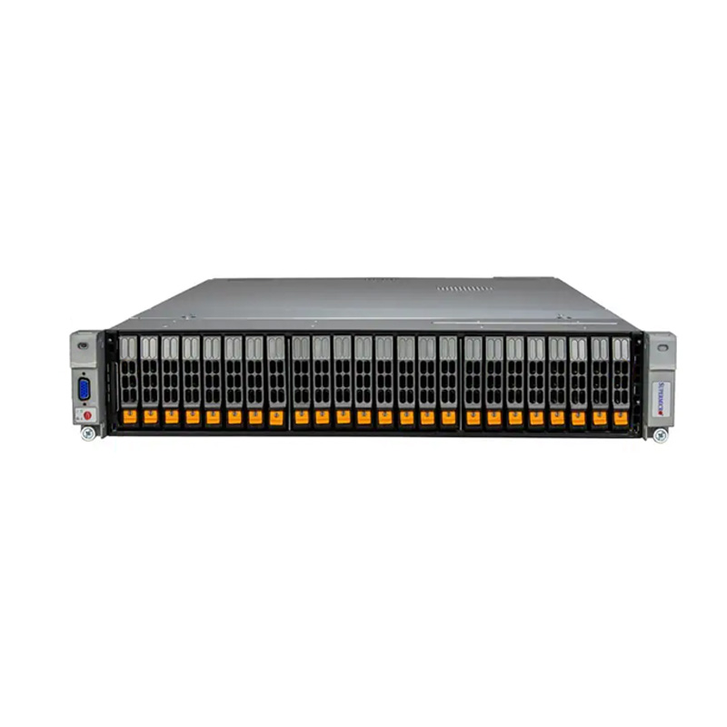 24 个 2.5 英寸热插拔 NVMe/SAS3/SATA3 混合硬盘托架(默认为 24 个 SAS3/SATA3 驱动器托架);2 个内置 M.2 NVMe/SATA;通过存储附加卡提供可选的 RAID 支持。