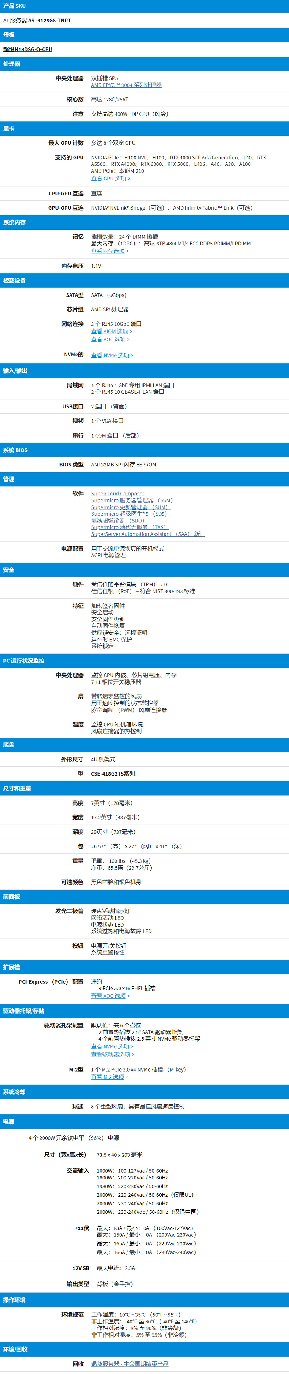 灵活的 GPU 支持:主动和被动 GPU,多达 8 个直连双宽全长 GPU,8 个热插拔重型风扇,具有最佳风扇速度控制。