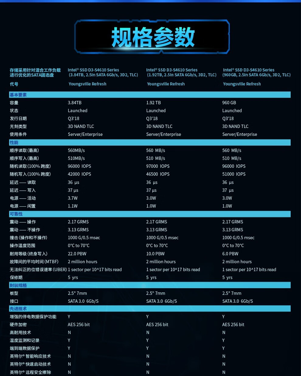 专为保持传统基础设施的兼容性而设计,可有效降低与数据中心现代化相关的成本。标准2.5英寸外形尺寸的容量从240GB到3.84TB不等,大容量驱动器的功耗降低了6倍冷却要求比2.5英寸硬盘降低了6倍。还可以在相同的空间内存储3.2倍的数据。