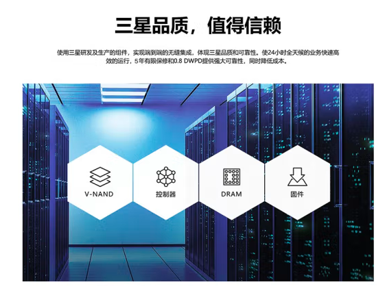 三星PM1643 SAS SSD持续读写速度最高分别达2100MB/s和2000MB/s,随机读写速度最高分别达400K IOPS和70K IOPS,相较于上一代PM1633a性能大幅度提升。工作温度0 - 70°C,增强软件和纠错码算法可确保长期可靠性