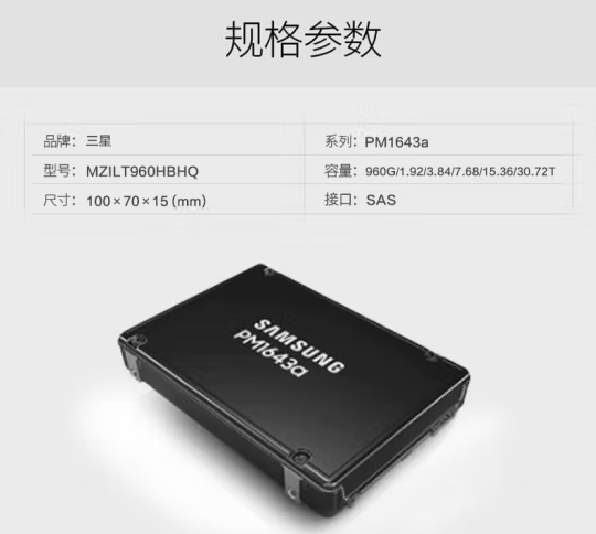 三星PM1643/PM1643A SSD固态硬盘 SAS接口