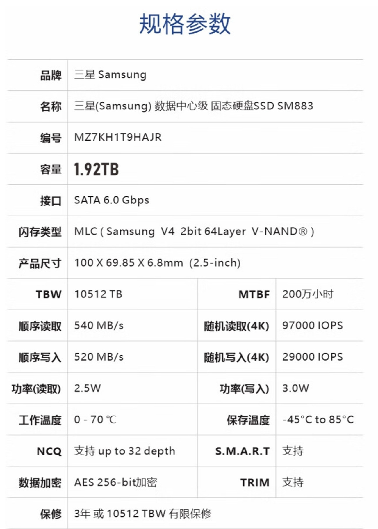 产品参数
